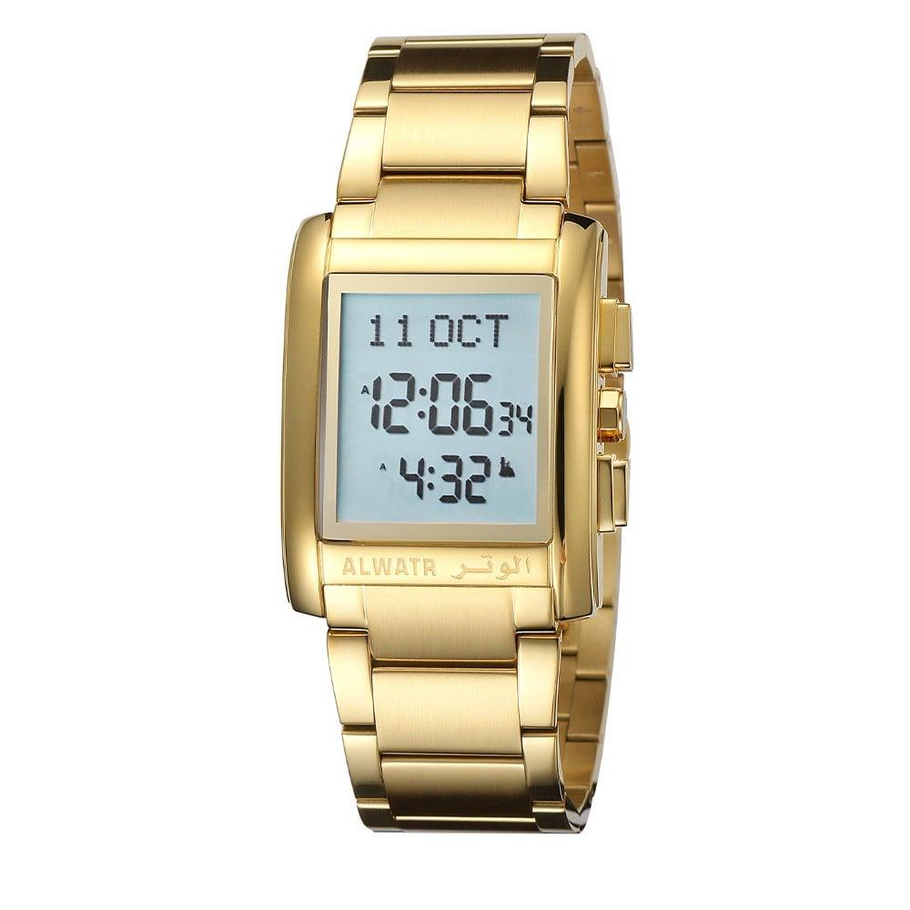 • عرض أوقات الأذان :ساعة يد رقمية تعرض شاشة ساعة الوتر الرئيسية التاريخ – وقت الساعة – وقت الأذان التالي ,كما يمكنك استعراض مواقيت الاذان لبقية اليوم عبر أزرار القائمة الرئيسية .كذلك يمكن تفعيل ميزة متابعة الاذان حيث تقوم الساعة بعرض عداد تنازلي قبل الأذان 60 دقيقة من وقت الاذان يوضح كم باقي من الدقائق حتى موعد الأذان .وتستطيع كذلك تفعيل ميزة متابعة الإقامة وهو عداد تصاعدي يعرض بعد الأذان يوضح كم من الدقائق مضت بعد موعد الأذان حتى الوصول لموعد إقامة الصلاة وهو 30 دقيقة من الأذان.