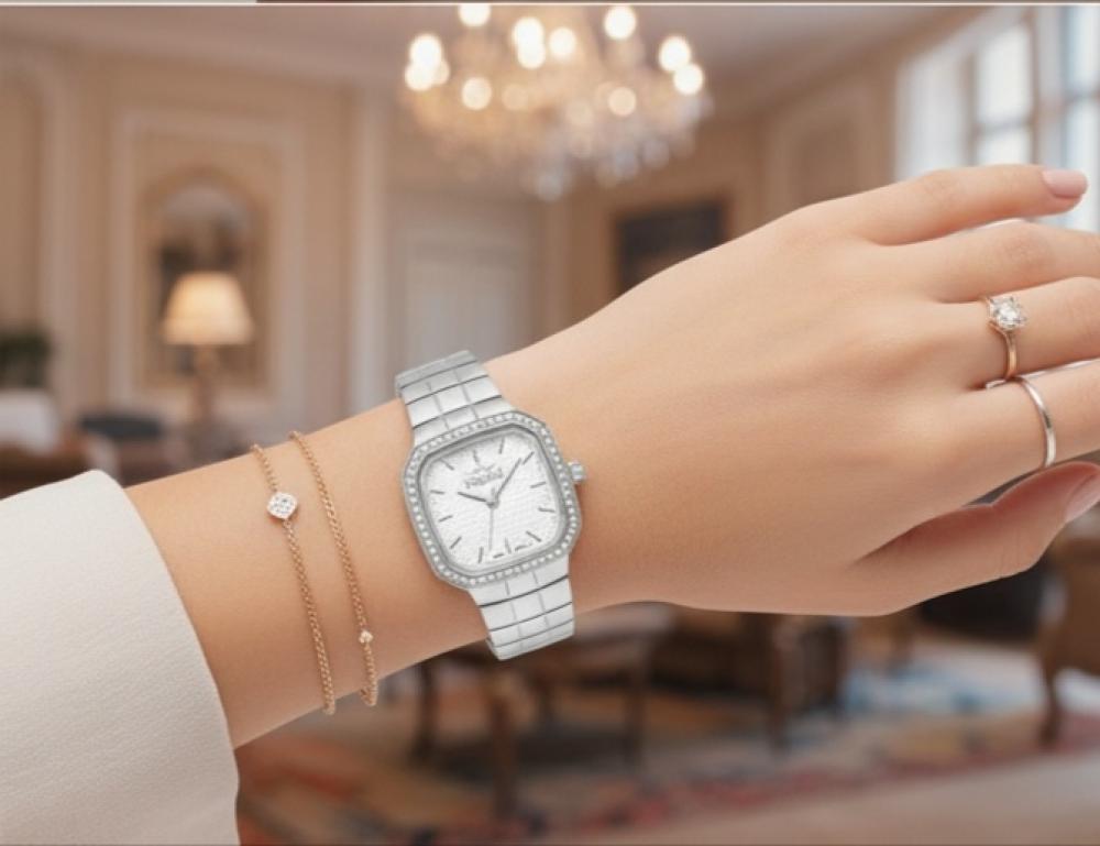 تألقي بإطلالة ساحرة مع هذه الساعة النسائية المصممة بذوق راقٍ، بإطار مرصع بالكريستال اللامع الذي يضفي لمسة أنثوية ناعمة وفخمة في آنٍ واحد.