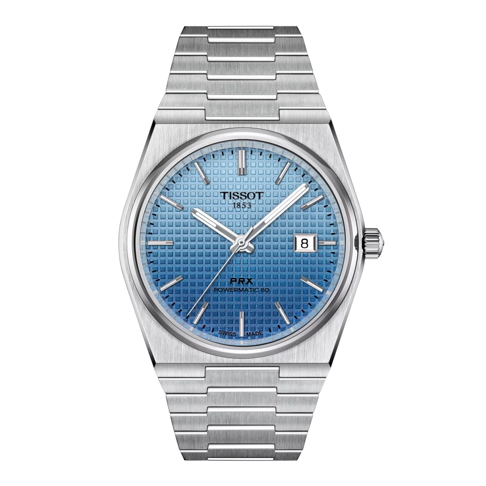 هذه النسخة الجديدة من ساعة PRX Powermatic 80 بقطر 40 مم تتميز بميناء جديد متدرج الألوان، يتلاعب بالضوء واللون ليمنحها تأثيرًا خلابًا، موفرًا نظامًا لونيًا جذابًا يكسر رتابة الحياة اليومية. تُذكّر هذه الساعات بأجواء الغسق والفجر، وهي مثالية لمن يستكشفون العالم.